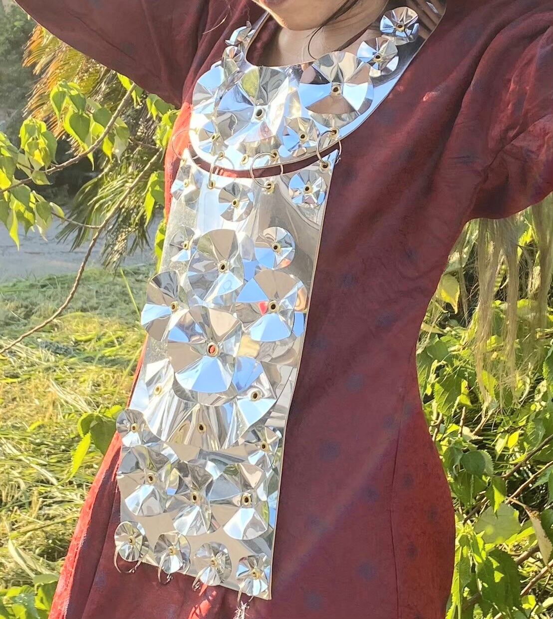 ドールハウスの鏡に使用されている薄型のミラー風プレートを加工してネックレスにしたアイテム。