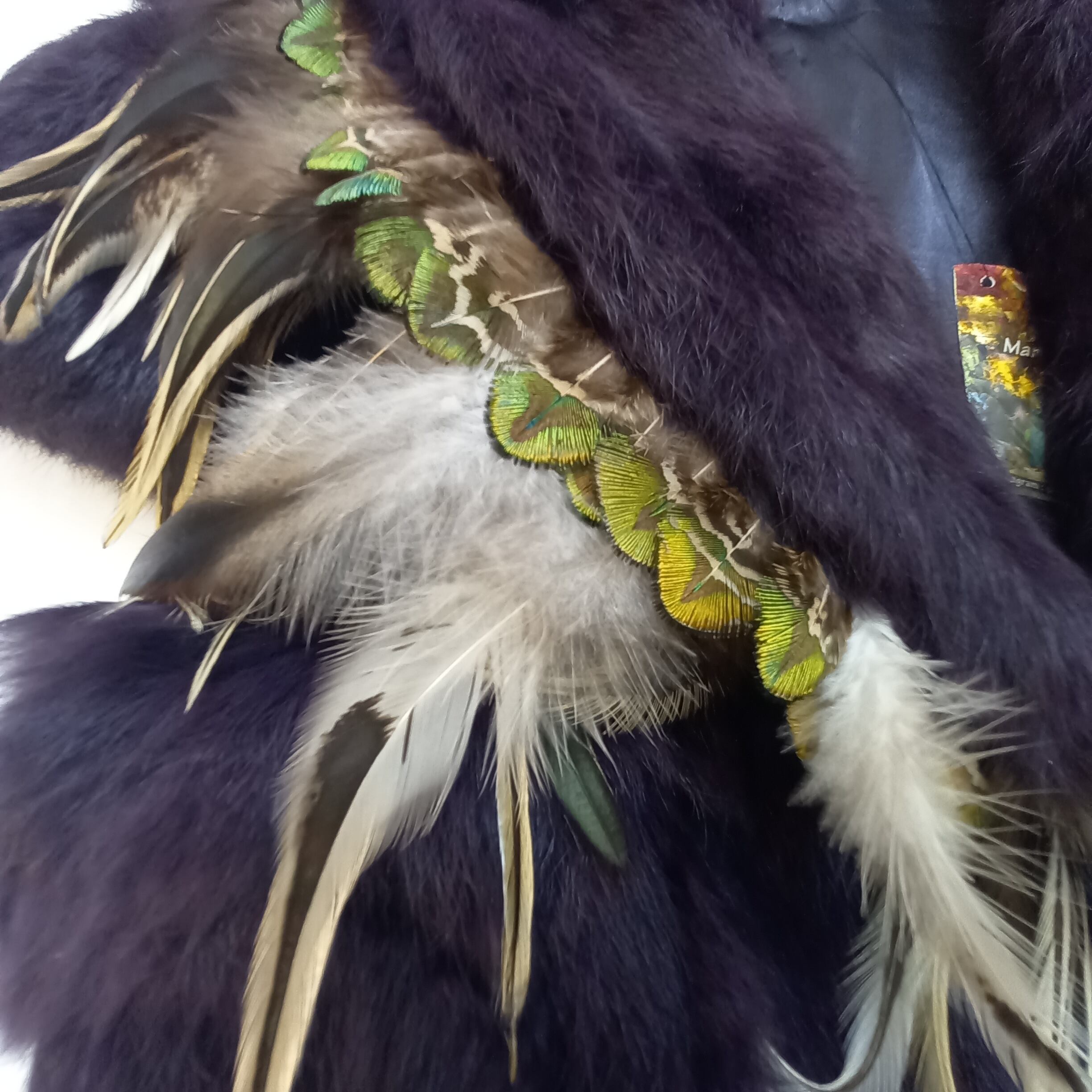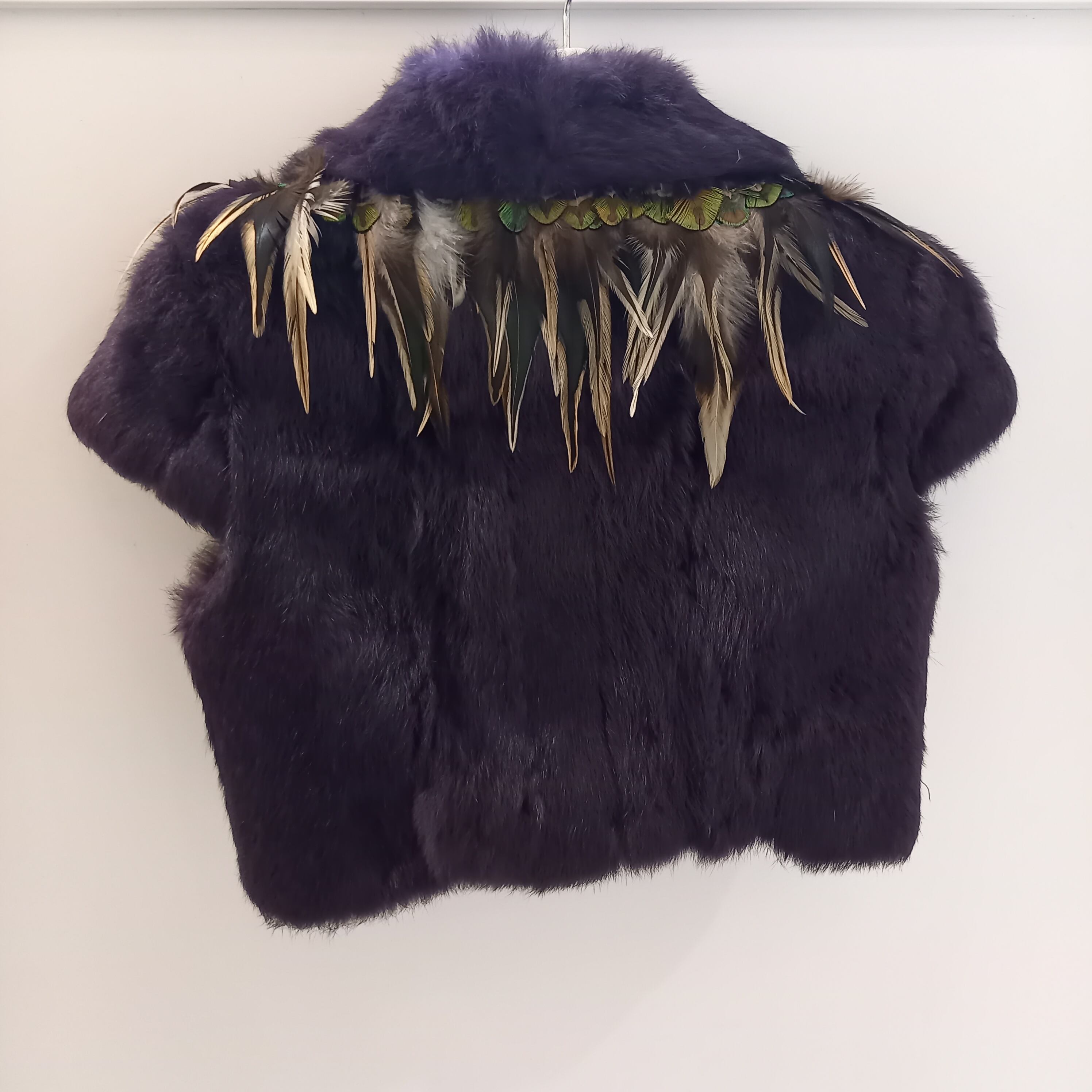 ラビットファーで作られたボレロを羽根で飾ったGORGEOUSなリメイクアイテム。