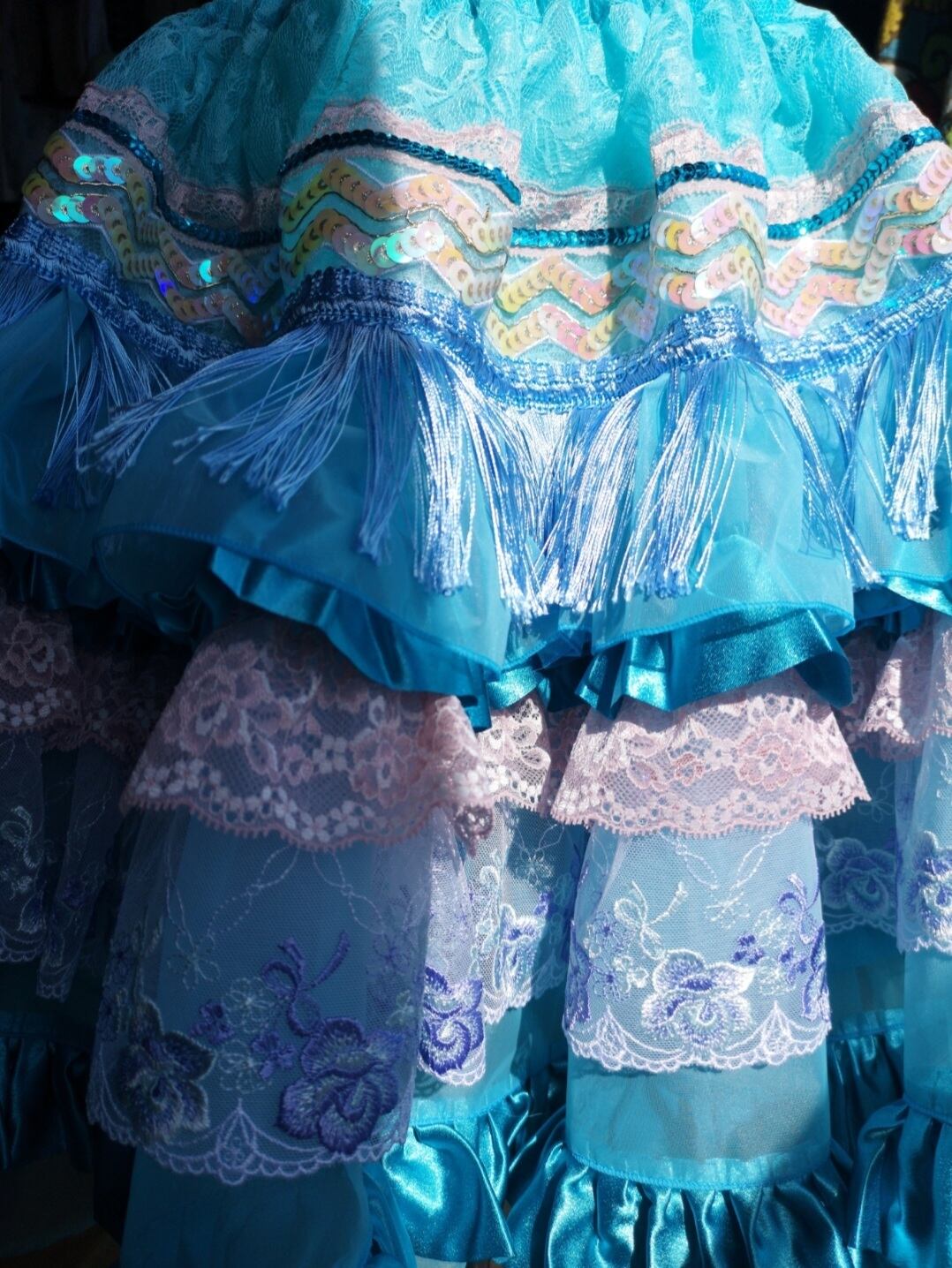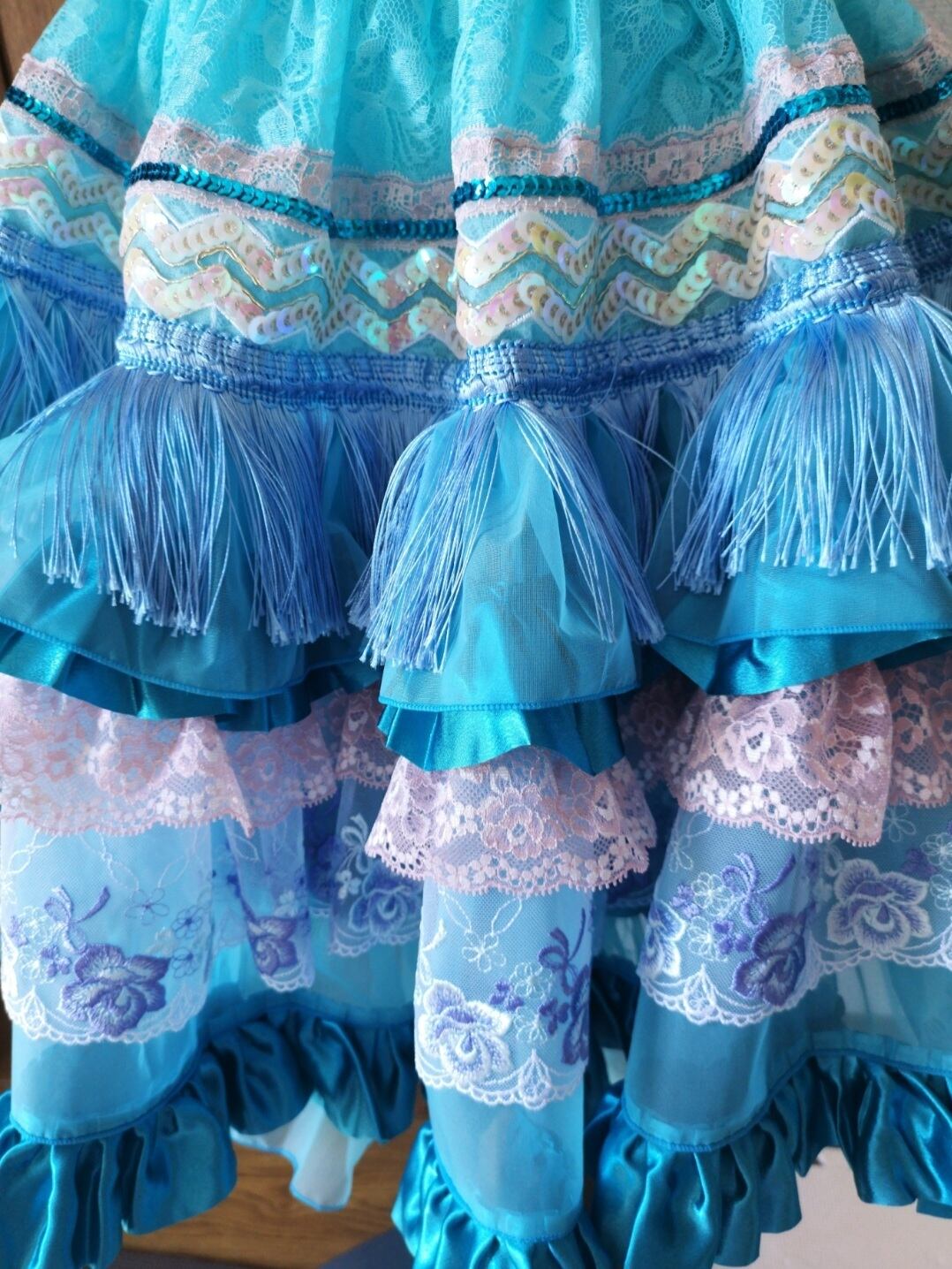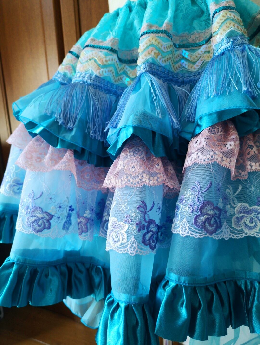 スパンコールや多種多様なレースを繊細に重ね浅瀬の海の煌めきを表現。スカート自体が透け感のある素材なので違う色のパニエをあわせて色を楽しんでも◯