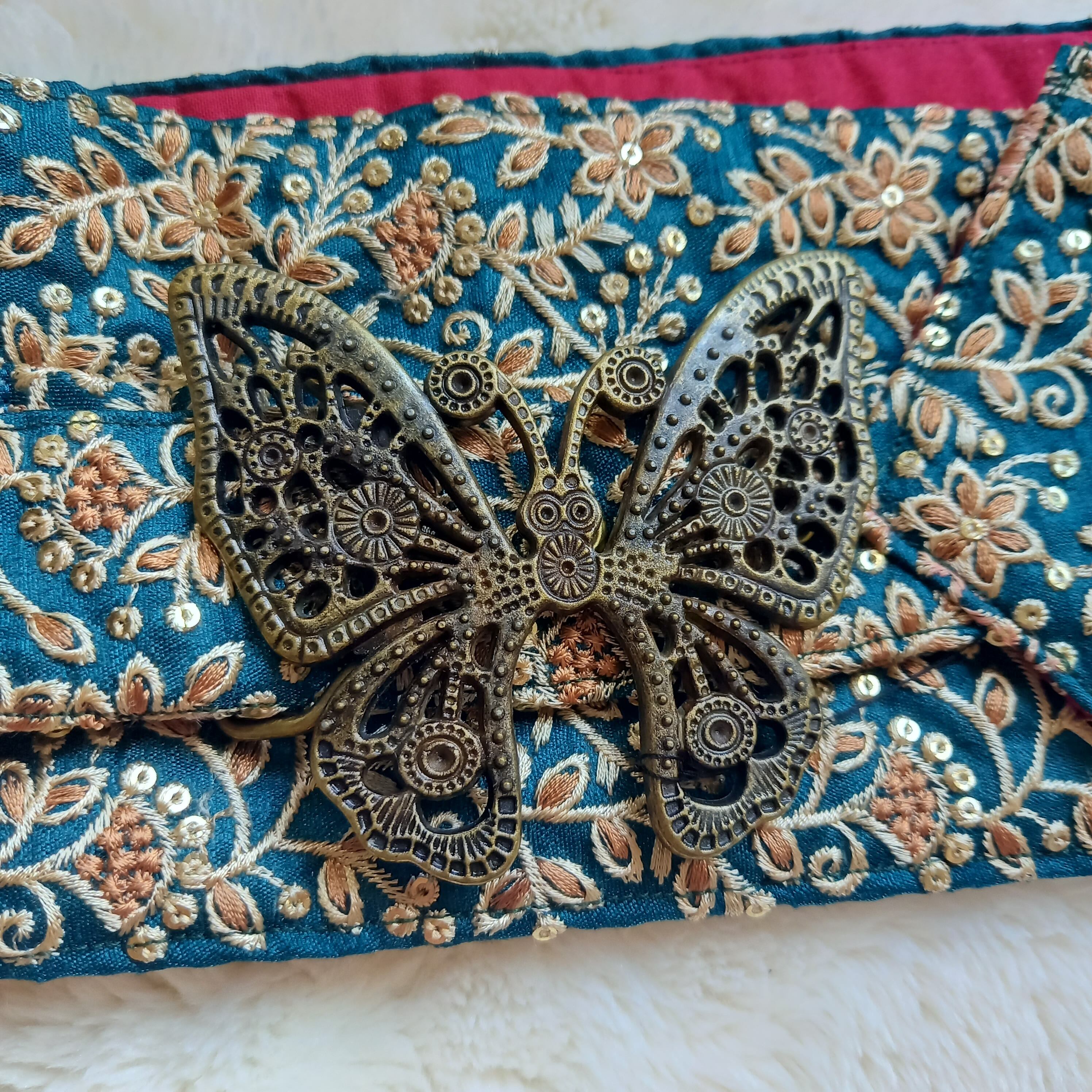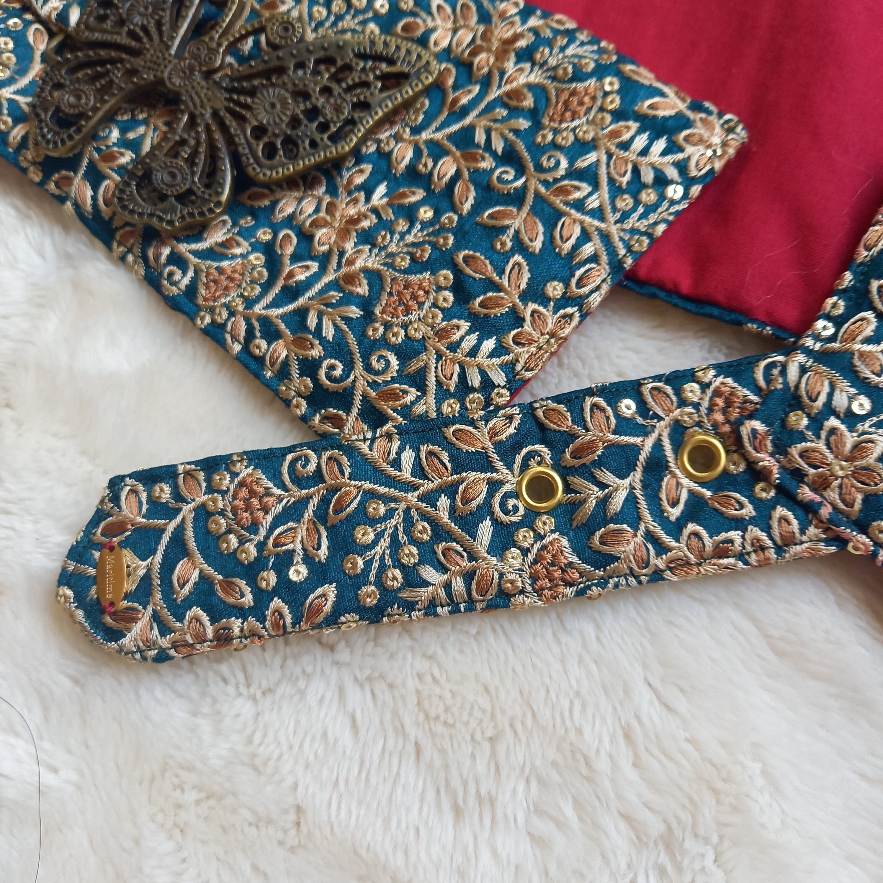 インド刺繍の幅広リボンを使用したベルト。