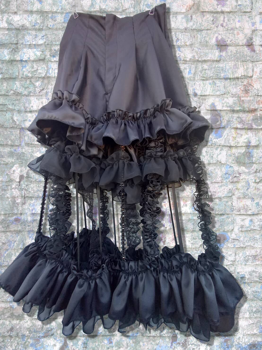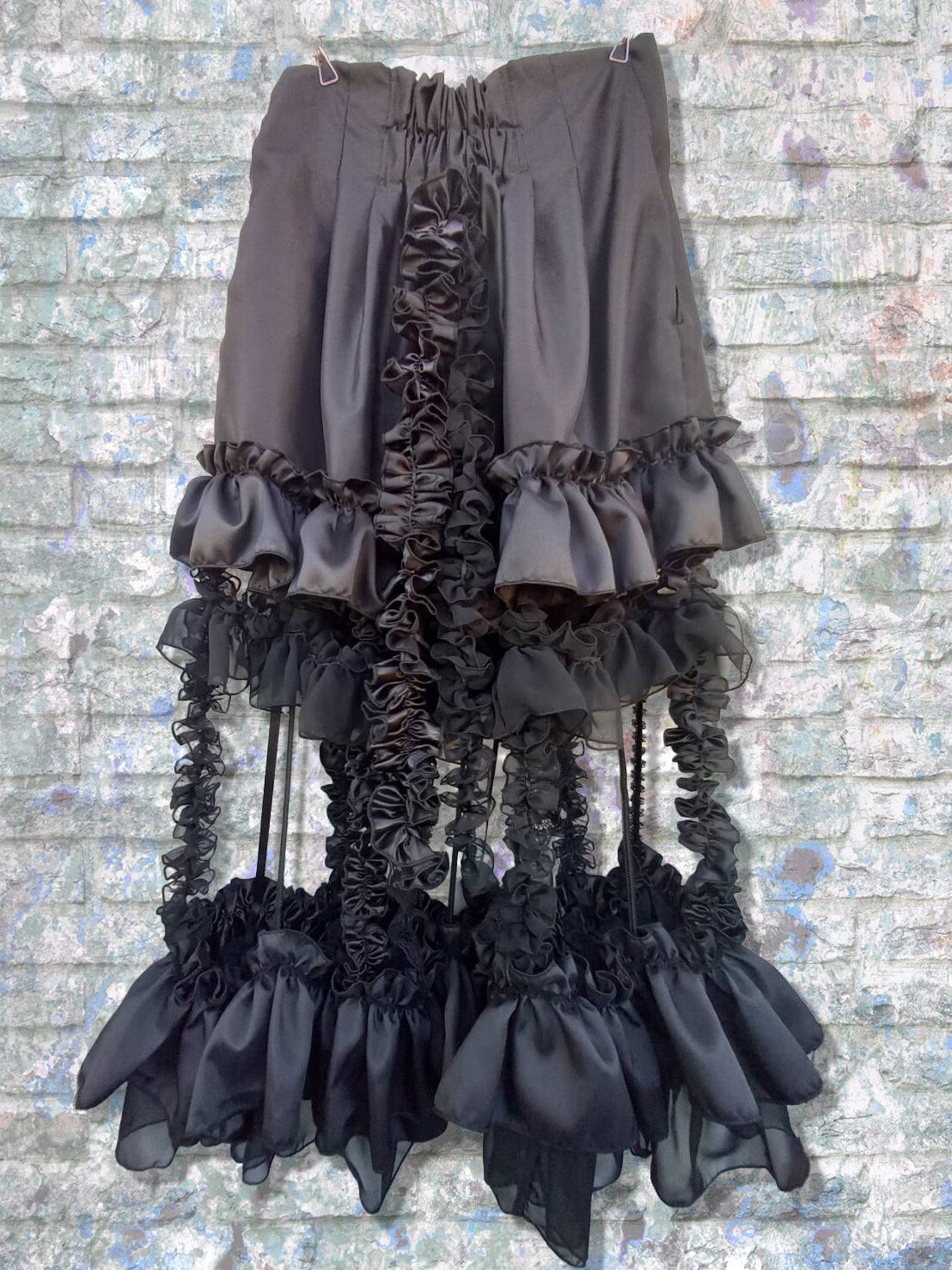 ミニのパンツにたっぷりのフリルがついた脚見えパンツ。脚回りに様々なレースやフリルを纏った動きのあるデザインです。